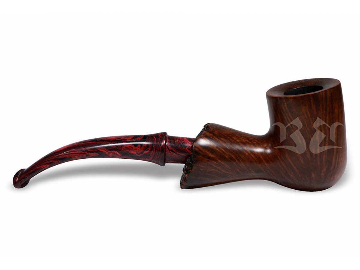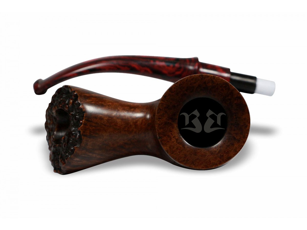 Esculpido totalmente à mão, sem moldes ou padrões pré-definidos, cada unidade é esculpida respeitando os veios, formas e características naturais da madeira, resultando em um cachimbo único, com identidade própria.