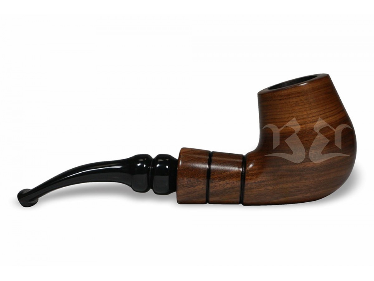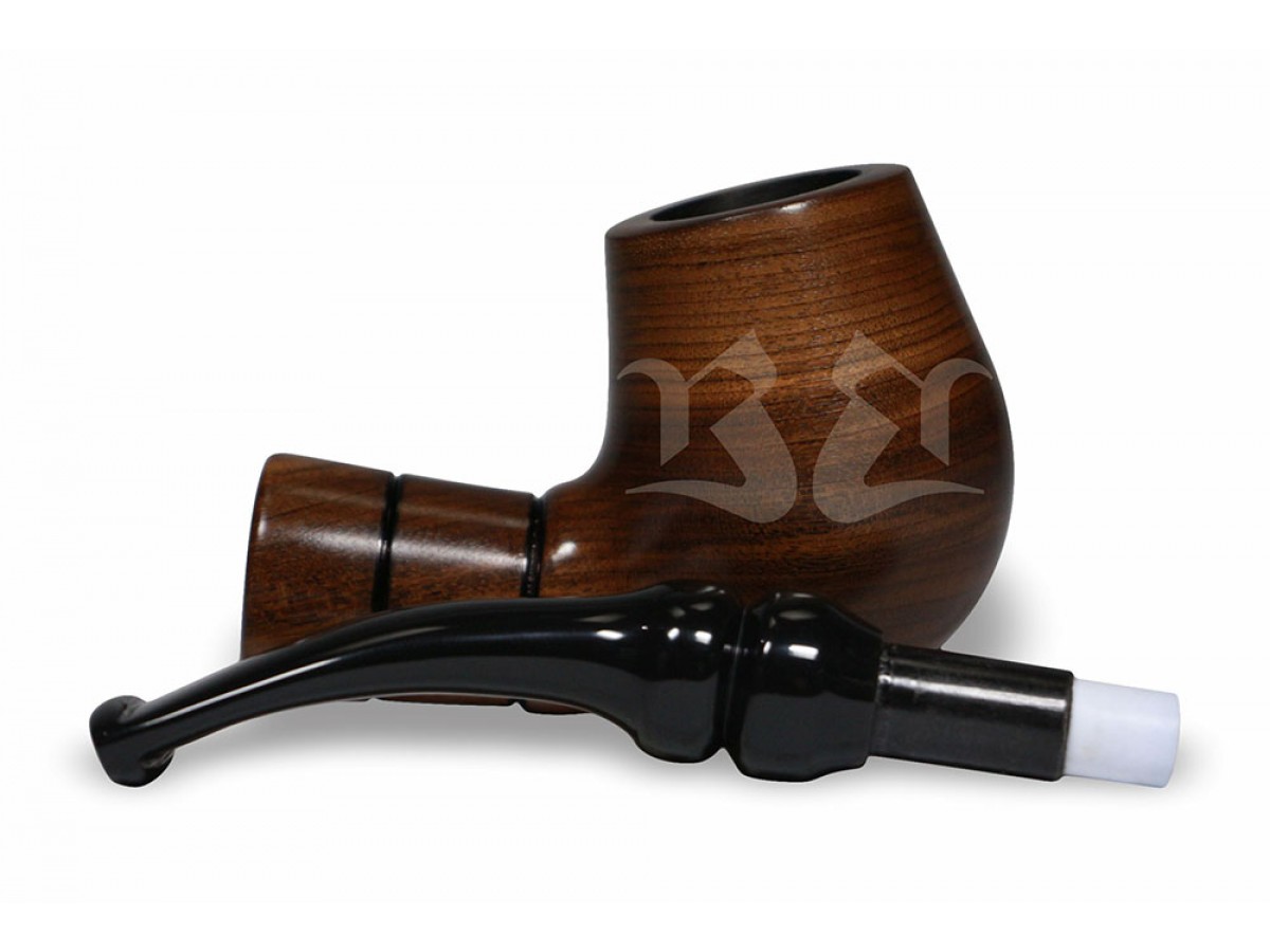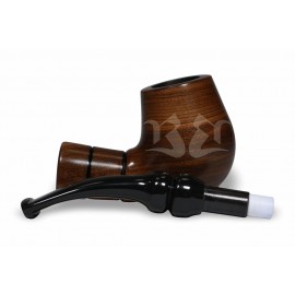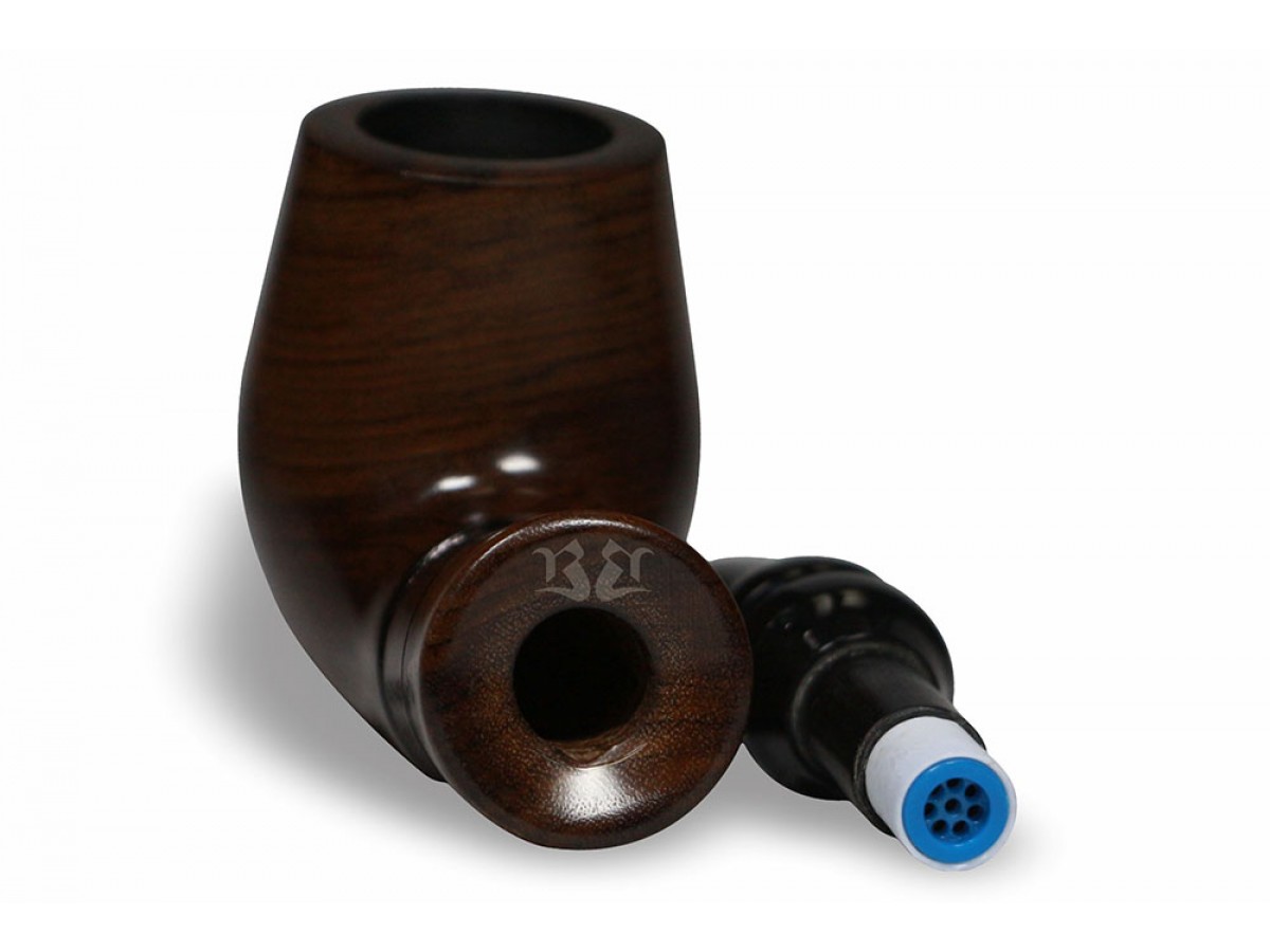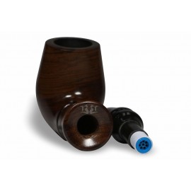 A piteira em acrílico europeu preto reforça a elegância do conjunto e cria um contraste refinado com o corpo natural do cachimbo. Seu brilho sutil e acabamento preciso acrescentam presença visual ao modelo, mantendo uma estética clássica com toque contemporâneo.