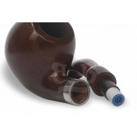 A piteira em ebonite europeu proporciona excelente vedação, conforto térmico e toque firme, além de agregar uma estética marcante ao conjunto. Resistente e agradável ao uso, contribui diretamente para uma fumada mais suave e controlada.